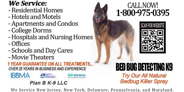 Plan B Canine LLC is a company in New Jersey that specializes in bed bug detection and eradication. With more than 11 years of experience in the industry, we have the expertise necessary to detect bed bugs and keep your home safe.